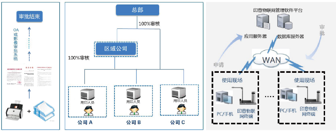 2、方便人员外带使用,外带经过总部或相关领导授权后,方可用印,用印文件实时上传总部服务器,实现了总公司管理部门对子公司用印的远程审批和监控;
