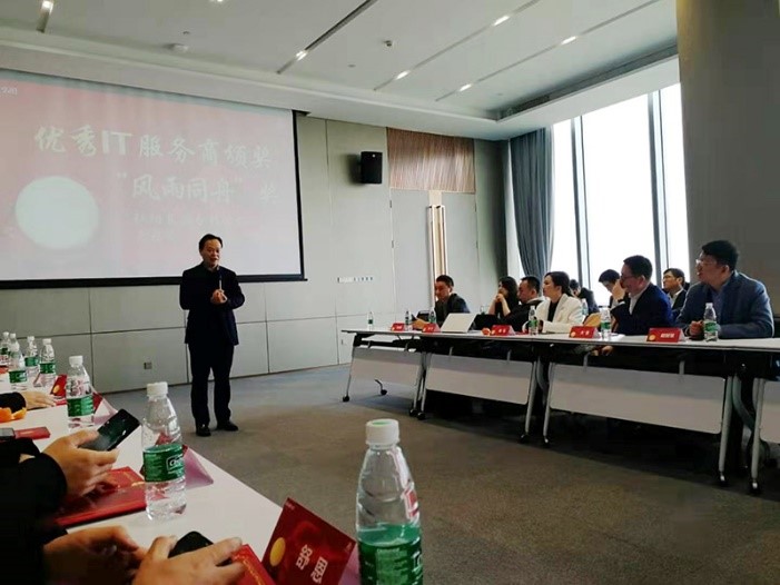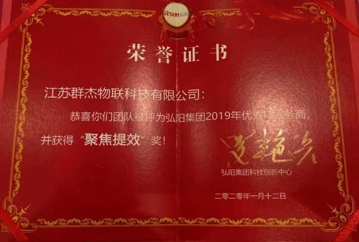 会上,弘阳集团总裁助理总裁、科技创新中心总经理罗艳兵先生做了弘阳集团2019年度信息化建设成果分享,他充分肯定了各信息化服务商的产品和服务给弘阳集团带来的改变和提升,并对它们在不同管理领域作出的贡献提出荣誉表彰,群杰印章物联网项目喜提“优秀IT服务商之聚焦提效”奖。