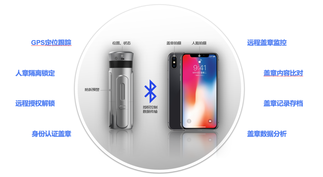 现在,异地分子公司借用公章,或到工商银行税务及招投标需要公章外带时,印章可被监控和远程授权,通过GPS定位跟踪、人章隔离锁定、远程授权解锁、身份认证盖章、远程盖章监控等手段,提升外带用章过程中的风险管控能力。